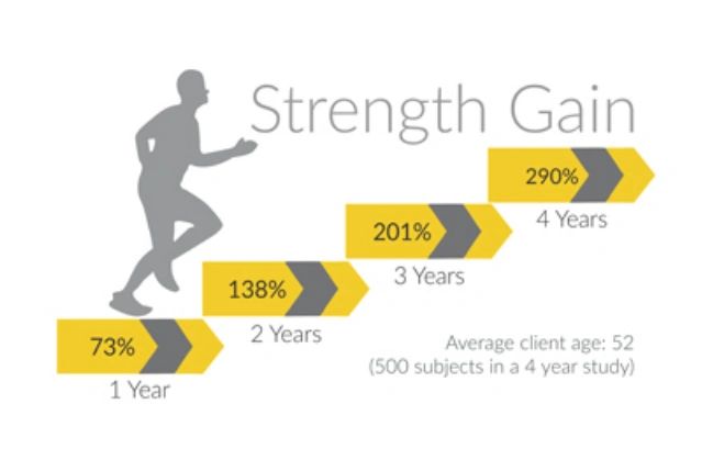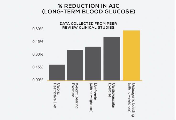 We’ve known for over 100 years that Osteogenic Loading works. In the late 1800’s, Dr. Julius Wolff discovered that bones will adapt to the loads under which they are placed (Wolff’s Law). What we didn’t know until the 2012 Deere & Tobias study (to the right) was that there is a minimum threshold to triggering osteogenesis. 4.2 multiples of your body weight is the minimum required force to trigger bone growth in the hip joint (the most important place to avoid fracture) and peak forces with adults in conventional resistance exercise only show 1.26 to 1.54 multiples of body weight.